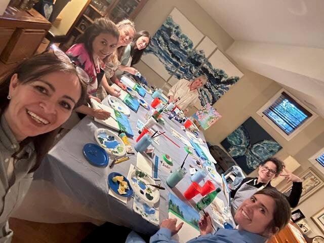 Our team building paint parties provide a unique and fun experience, especially for those new to painting. For just $50 per person (minimum 4 participants), your group will enjoy an evening of artistic exploration and social interaction. Each party includes all necessary art materials, guided instruction. For an additional fee a glass of wine or hot beverage with a light snack can be added to enhance the relaxed atmosphere.